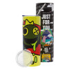 Blue, Rainbow friends, Neon Yellow Travel Tumbler θερμό, μεταλλικό καλαμάκι(Ανωξείδωτο 304 Food grade, BPA free, 600ml)