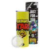 Brawl Stars, Neon Yellow Travel Tumbler θερμό, μεταλλικό καλαμάκι(Ανωξείδωτο 304 Food grade, BPA free, 600ml)