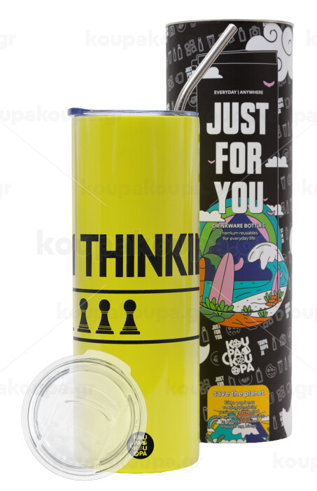 I'm thinking, Neon Yellow Travel Tumbler θερμό, μεταλλικό καλαμάκι(Ανωξείδωτο 304 Food grade, BPA free, 600ml)