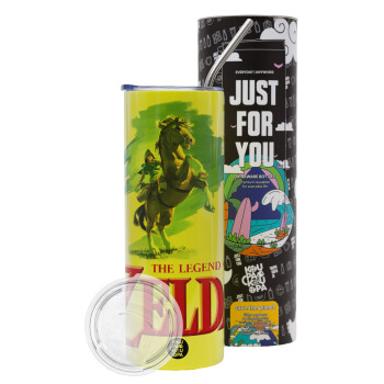 Zelda, Neon Yellow Travel Tumbler θερμό, μεταλλικό καλαμάκι(Ανωξείδωτο 304 Food grade, BPA free, 600ml)