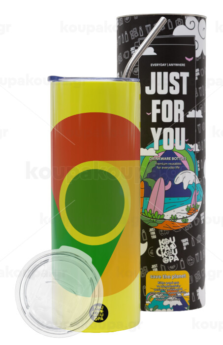Chrome, Neon Yellow Travel Tumbler θερμό, μεταλλικό καλαμάκι(Ανωξείδωτο 304 Food grade, BPA free, 600ml)