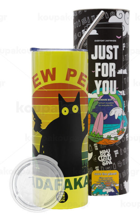 PEW PEW madafakas, Neon Yellow Travel Tumbler θερμό, μεταλλικό καλαμάκι(Ανωξείδωτο 304 Food grade, BPA free, 600ml)