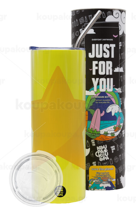 Star, Neon Yellow Travel Tumbler θερμό, μεταλλικό καλαμάκι(Ανωξείδωτο 304 Food grade, BPA free, 600ml)