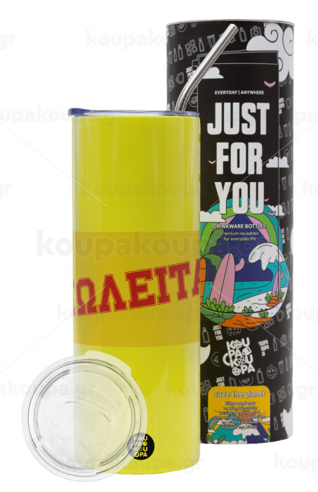 ΠΩΛΕΙΤΑΙ, Neon Yellow Travel Tumbler θερμό, μεταλλικό καλαμάκι(Ανωξείδωτο 304 Food grade, BPA free, 600ml)