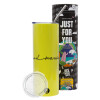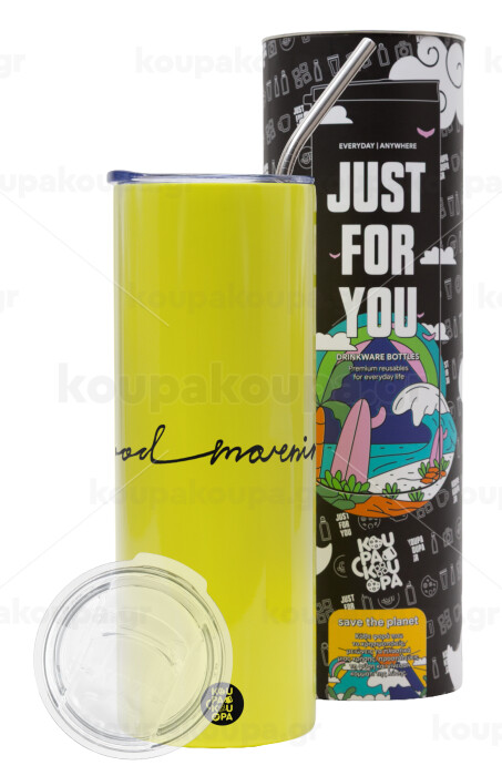 Good morning, Neon Yellow Travel Tumbler θερμό, μεταλλικό καλαμάκι(Ανωξείδωτο 304 Food grade, BPA free, 600ml)