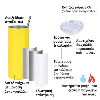 Υλικό: Ανοξείδωτο ατσάλι, stainless steelΟικολογικό: χωρίς BPA, μη τοξικόΘερμό: ΝΑΙΧωρητικότητα: 600ml / 20ozΧρήση: ΖΕΣΤΑ, ΚΡΥΟΚαλαμάκι ανοξείδωτο: ΝΑΙΚαπάκι: NAIΓια θήκη αυτοκινήτου: ΝΑΙΌξινα: ΝΑΙ