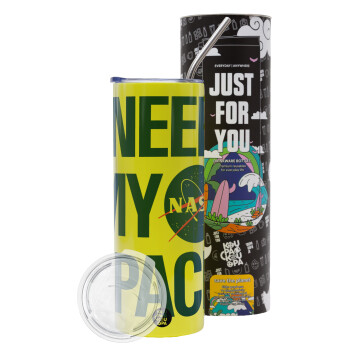 I need my space, Neon Yellow Travel Tumbler θερμό, μεταλλικό καλαμάκι(Ανωξείδωτο 304 Food grade, BPA free, 600ml)