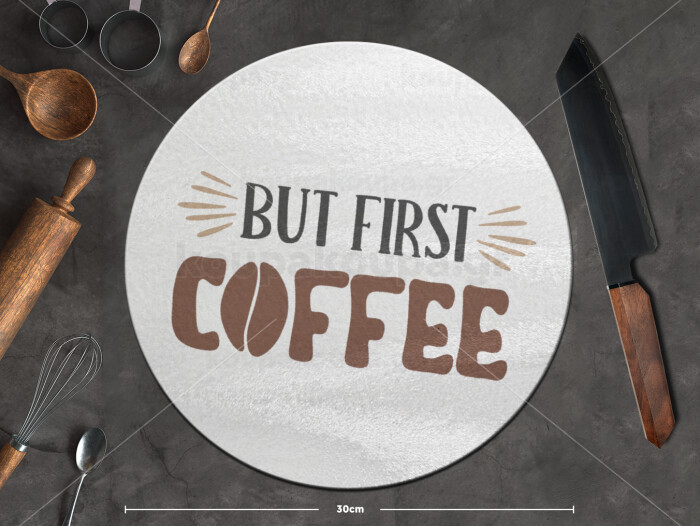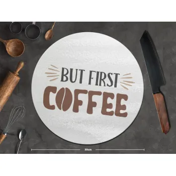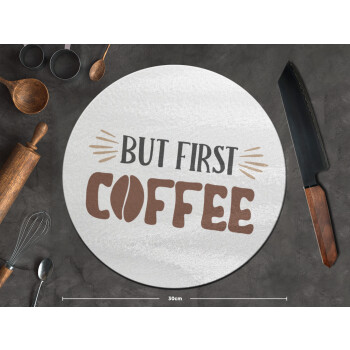 But first Coffee, Επιφάνεια κοπής γυάλινη στρογγυλή (30cm)