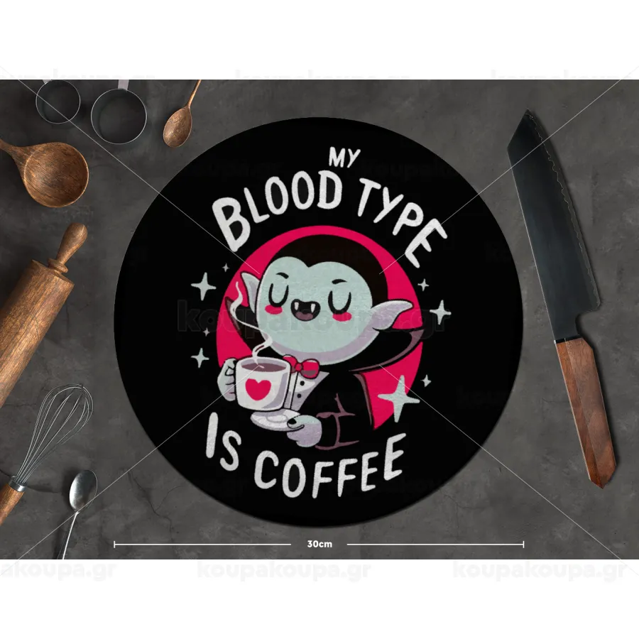 My blood type is coffee, Επιφάνεια κοπής γυάλινη στρογγυλή (30cm)