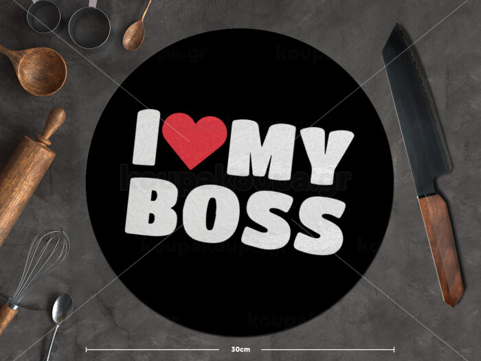 I LOVE MY BOSS, Επιφάνεια κοπής γυάλινη στρογγυλή (30cm)