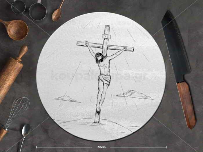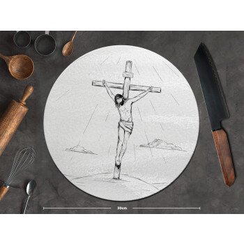 Jesus Christ , Επιφάνεια κοπής γυάλινη στρογγυλή (30cm)
