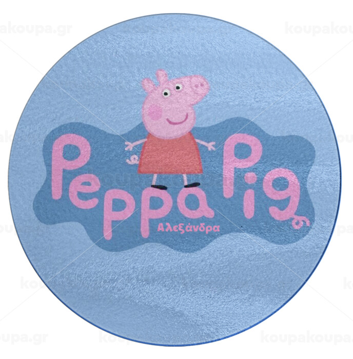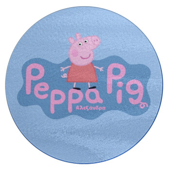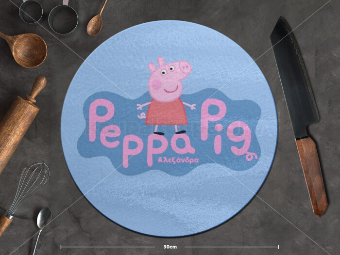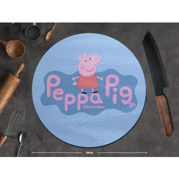 Πέππα το γουρουνάκι μπλε με όνομα, Επιφάνεια κοπής γυάλινη στρογγυλή (30cm)