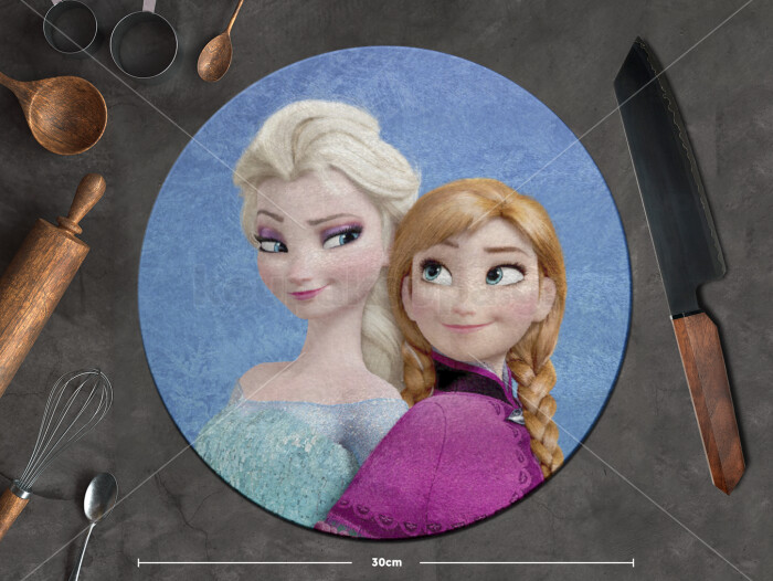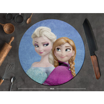 Ψυχρά κι ανάποδα Έλσα και Άννα, Επιφάνεια κοπής γυάλινη στρογγυλή (30cm)