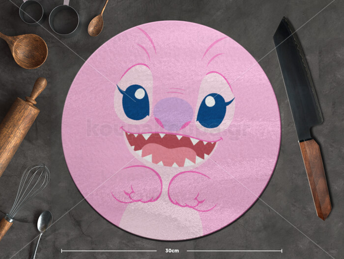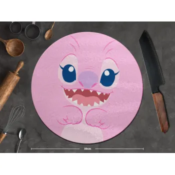 Lilo & Stitch Angel pink, Επιφάνεια κοπής γυάλινη στρογγυλή (30cm)