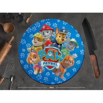 PAW patrol, τα κουτάβια, Επιφάνεια κοπής γυάλινη στρογγυλή (30cm)