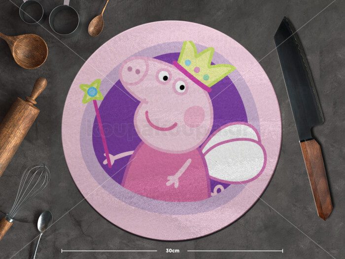 Peppa pig Queen, Επιφάνεια κοπής γυάλινη στρογγυλή (30cm)