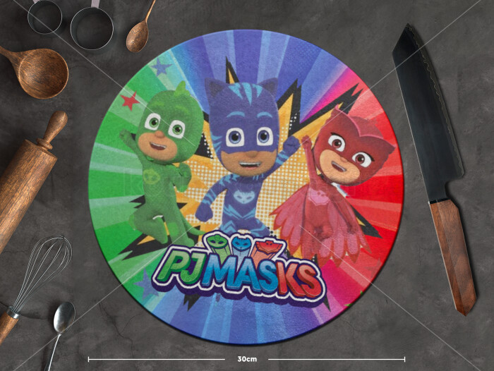 PJ masks, Επιφάνεια κοπής γυάλινη στρογγυλή (30cm)
