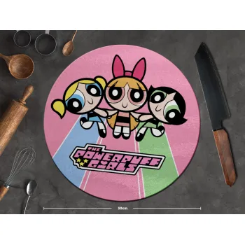 The powerpuff girls , Επιφάνεια κοπής γυάλινη στρογγυλή (30cm)