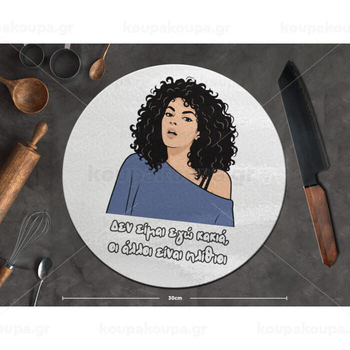 Δεν είμαι εγώ κακιά, Επιφάνεια κοπής γυάλινη στρογγυλή (30cm)