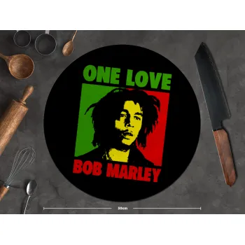Bob marley, one love, Επιφάνεια κοπής γυάλινη στρογγυλή (30cm)