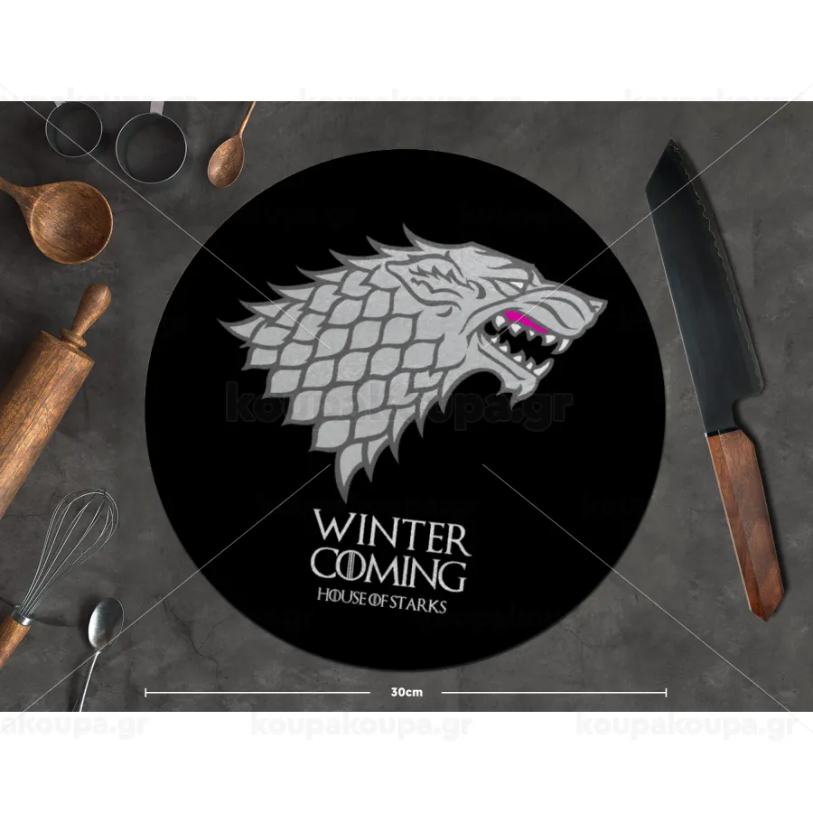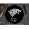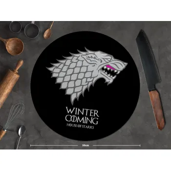 GOT House of Starks, winter coming, Επιφάνεια κοπής γυάλινη στρογγυλή (30cm)