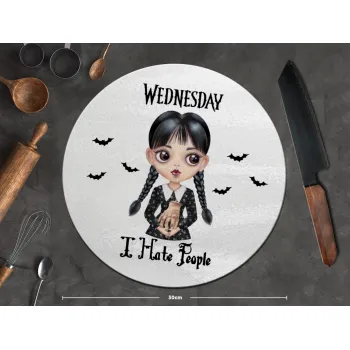 Wednesday Adams, i hate people, Επιφάνεια κοπής γυάλινη στρογγυλή (30cm)