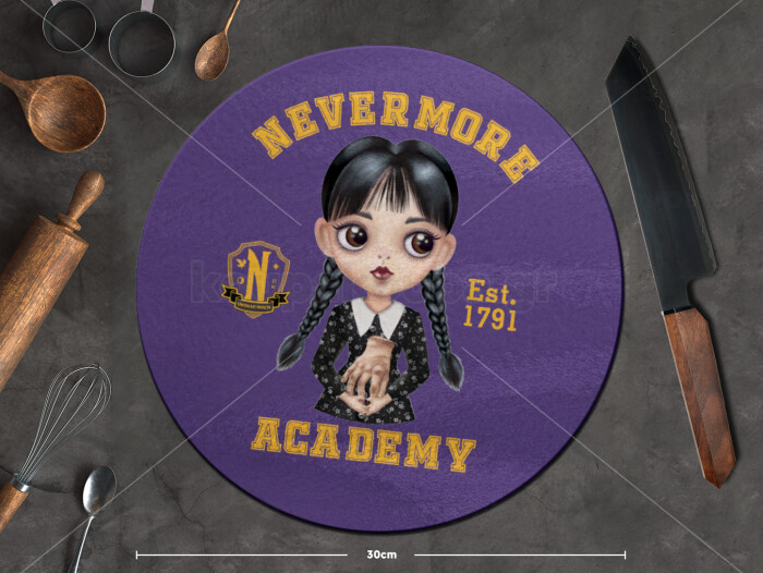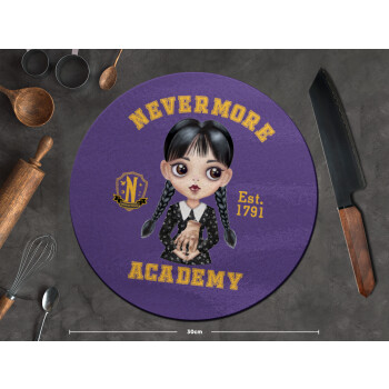 Wednesday Adams, nevermore, Επιφάνεια κοπής γυάλινη στρογγυλή (30cm)