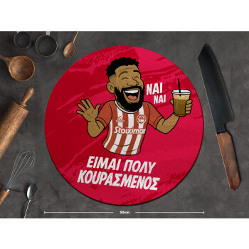 Ροντινέι, "ΠΟΛΥ ΚΟΥΡΑΣΜΕΝΟΣ", Επιφάνεια κοπής γυάλινη στρογγυλή (30cm)