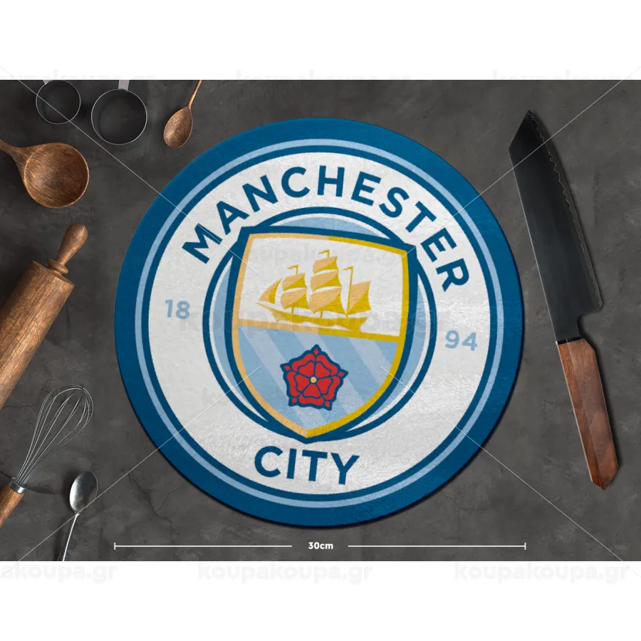 Manchester City FC , Επιφάνεια κοπής γυάλινη στρογγυλή (30cm)