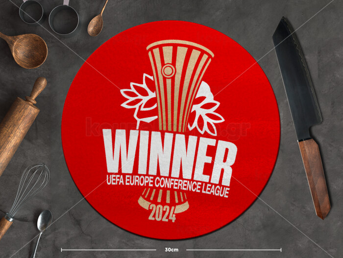 Europa Conference League WINNER, Επιφάνεια κοπής γυάλινη στρογγυλή (30cm)