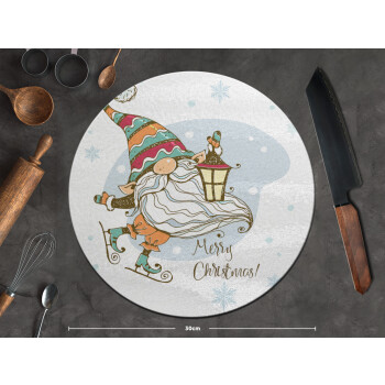 Christmas nordic gnomes, Επιφάνεια κοπής γυάλινη στρογγυλή (30cm)