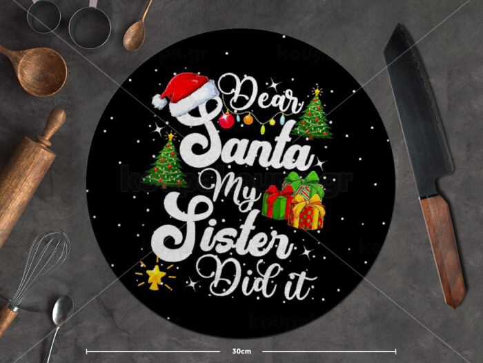 Dear santa my Sister Did it, Επιφάνεια κοπής γυάλινη στρογγυλή (30cm)
