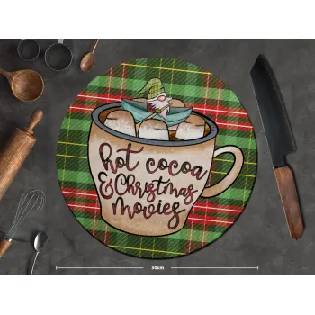 Hot Cocoa And Christmas Movies, Επιφάνεια κοπής γυάλινη στρογγυλή (30cm)
