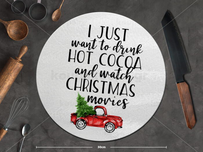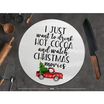 I just want to drink hot cocoa and watch christmas movies pickup car, Επιφάνεια κοπής γυάλινη στρογγυλή (30cm)