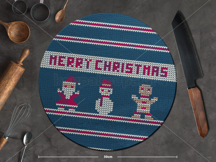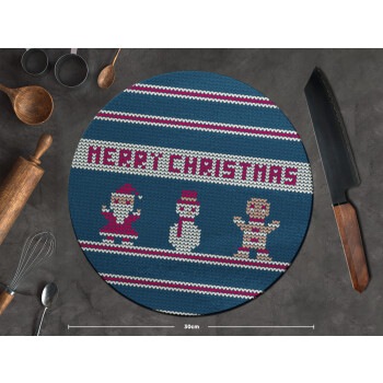 Merry christmas knitted, Επιφάνεια κοπής γυάλινη στρογγυλή (30cm)