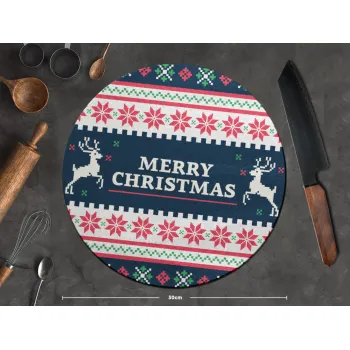 Merry Christmas Vintage, Επιφάνεια κοπής γυάλινη στρογγυλή (30cm)
