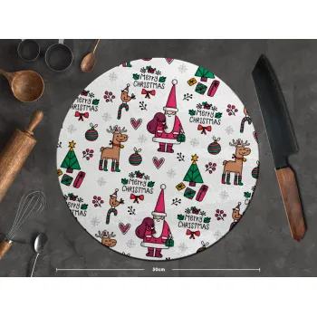 Santas, Deers & Trees, Επιφάνεια κοπής γυάλινη στρογγυλή (30cm)