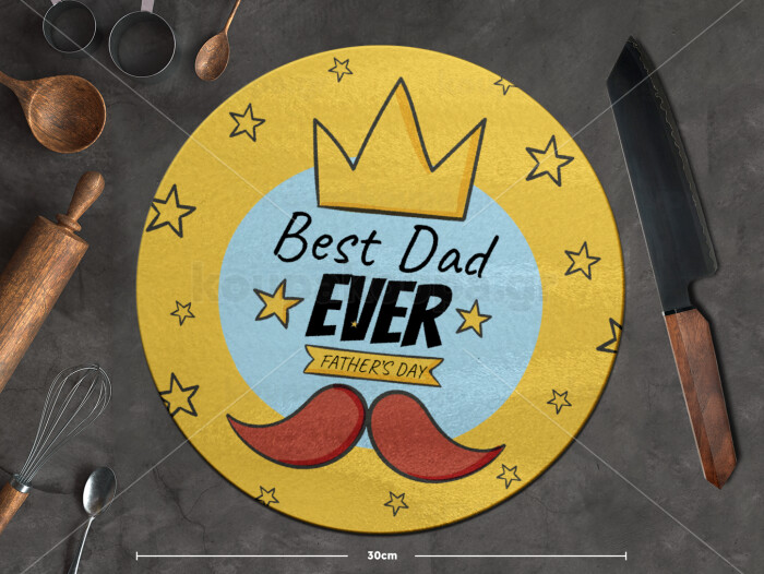 King, Best dad ever, Επιφάνεια κοπής γυάλινη στρογγυλή (30cm)