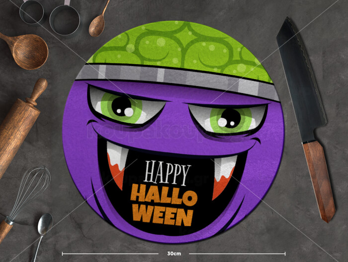 Halloween trick or treat Monster, Επιφάνεια κοπής γυάλινη στρογγυλή (30cm)