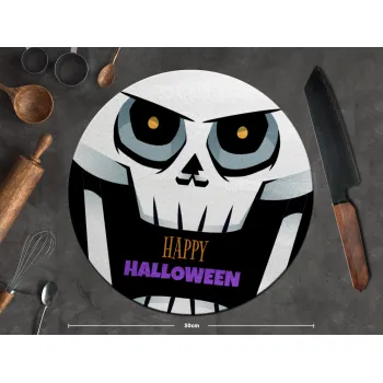 Halloween trick or treat Skeleton, Επιφάνεια κοπής γυάλινη στρογγυλή (30cm)