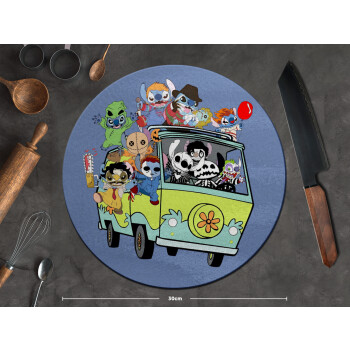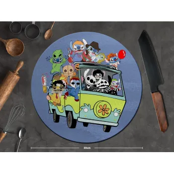 Stitch Halloween scooby car, Επιφάνεια κοπής γυάλινη στρογγυλή (30cm)