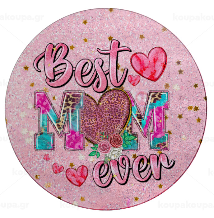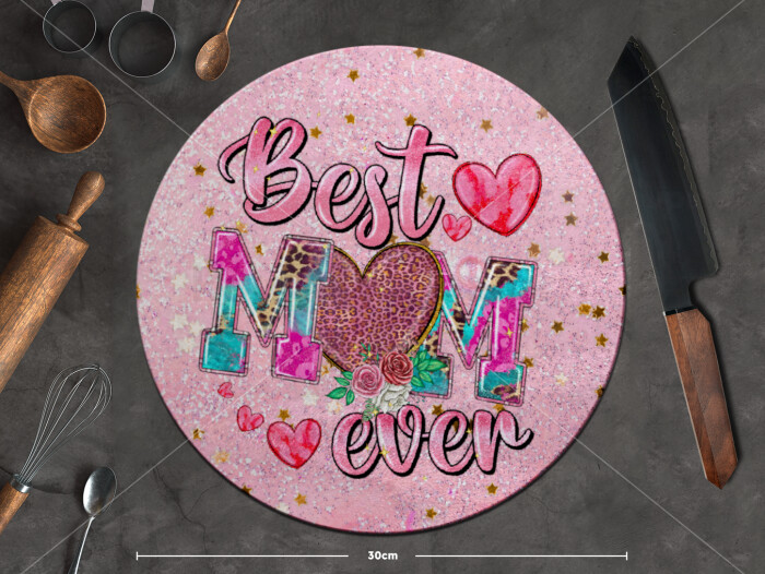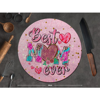 Best mom ever Mother's Day pink, Επιφάνεια κοπής γυάλινη στρογγυλή (30cm)