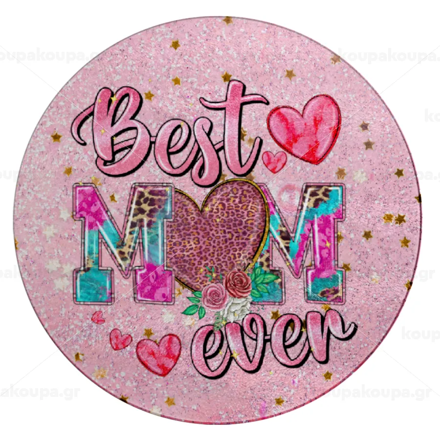 Best mom ever Mother's Day pink, Επιφάνεια κοπής γυάλινη στρογγυλή (30cm)