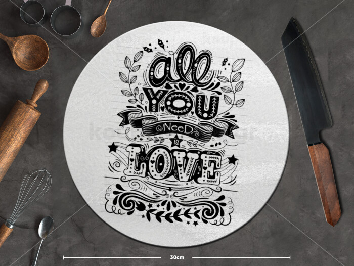 All you need is love, Επιφάνεια κοπής γυάλινη στρογγυλή (30cm)