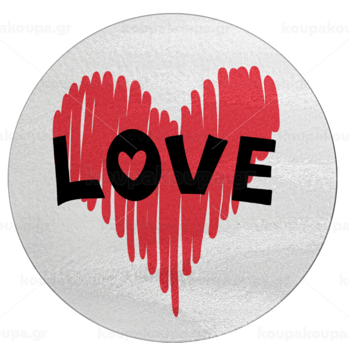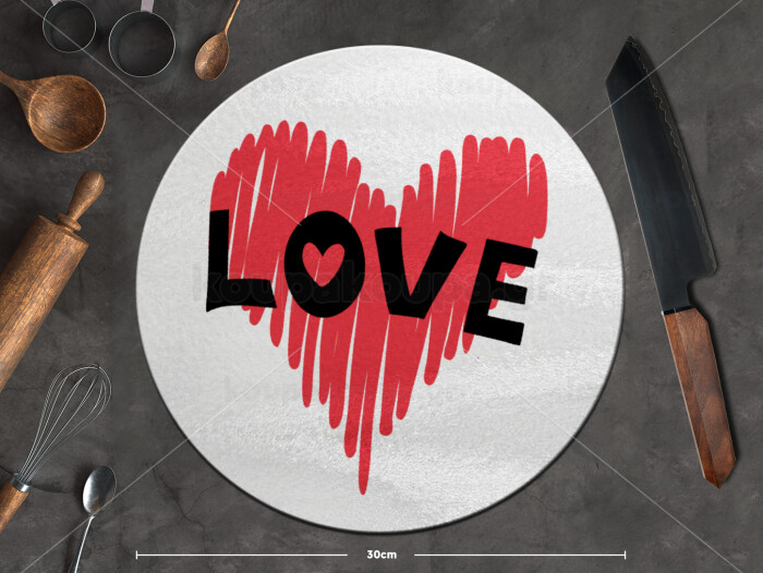 I Love You red heart, Επιφάνεια κοπής γυάλινη στρογγυλή (30cm)
