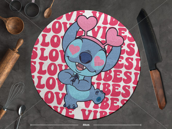 Lilo & Stitch Love vibes, Επιφάνεια κοπής γυάλινη στρογγυλή (30cm)