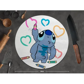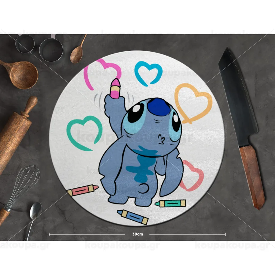 Lilo & Stitch painting, Επιφάνεια κοπής γυάλινη στρογγυλή (30cm)