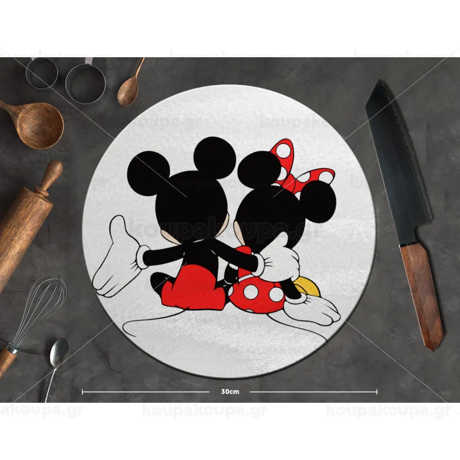 mickey and minnie hags, Επιφάνεια κοπής γυάλινη στρογγυλή (30cm)