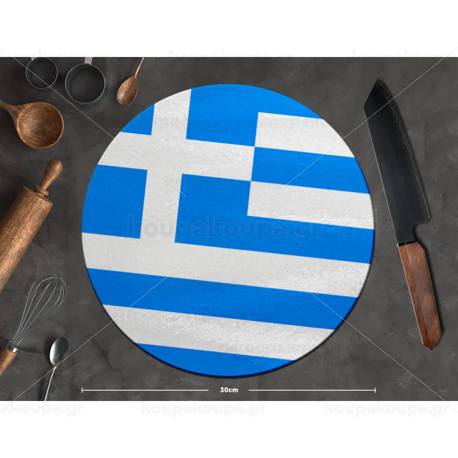 Greece flag, Επιφάνεια κοπής γυάλινη στρογγυλή (30cm)