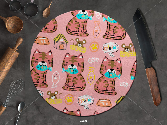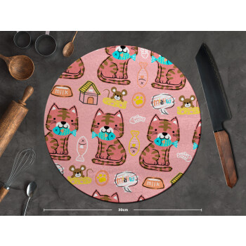 Cats and Fishes, Επιφάνεια κοπής γυάλινη στρογγυλή (30cm)